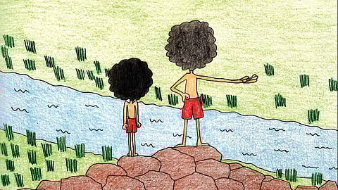 Mother laughed and said, ‘Gopal, when you went to swim alone, had you ever noticed an old man fishing by the river?’ Gopal thought for a while. ‘Yes, Ma. I now remember. An old fellow with a droopy hat sitting on the river bank with a fishing rod’, he said.