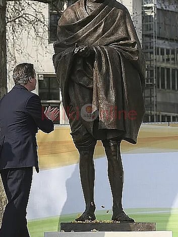 லண்டன் பாராளுமன்ற சதுக்கத்தில் இரண்டாம் உலகப் போரின் போது இந்தியத் தலைவர்களை கேலி செய்த பிரிட்டனின் பிரதமர் வின்ஸ்டன் சர்ச்சிலின் சிலைக்கு அருகில் மகாத்மாவின் சிலை அமைக்கப்பட்டது.