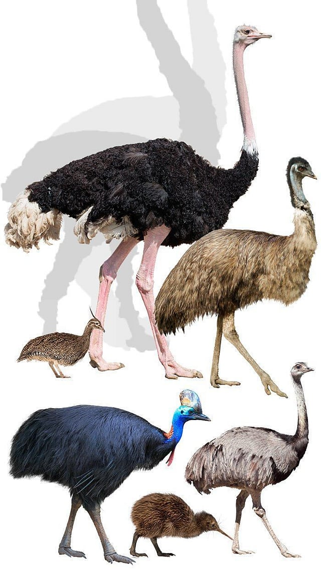 காசோவரி (Cassowary): நியூ கினியா மற்றும் வடக்கு ஆஸ்திரேலியாவை பூர்வீகமாகக் கொண்ட காசோவரிகள் சிறிய இறக்கைகள் மற்றும் வலுவான கால்கள் கொண்ட பெரிய, கனமான பறவைகள். அவற்றால் பறக்க முடியாவிட்டாலும் சிறந்த ஓட்டப்பந்தய வீரர்கள் மற்றும் நீச்சல் வீரர்கள். இவை அடர்ந்த வனங்களில் வாழ்கின்றன.