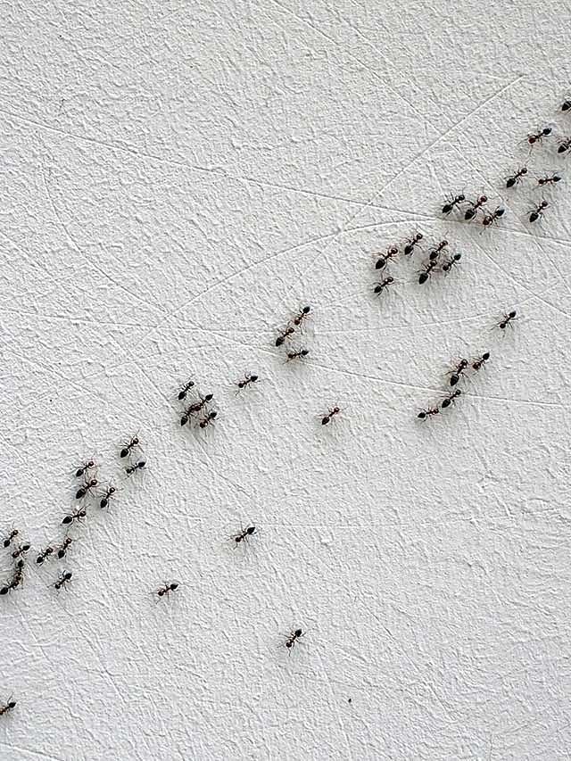 எறும்புகள் குழுக்களாக வாழும் தன்மை கொண்டவை. இவை உணவு தேட செல்லும்போது பீரோமோன் (Pheromone) என்னும் ரசாயனத்தை வழி நெடுக விட்டுச்செல்லும். இதனால் முதலில் செல்லும் எறும்பின் ரசாயனத்தை அதன் பின்வரும் எறும்பு பின் தொடரும், தானும் ரசாயனத்தை விட்டுச் செல்லும். இதனால் அனைத்து எறும்புகளும் ஒன்றன்பின் ஒன்றாக வரிசையாக செல்லும்.