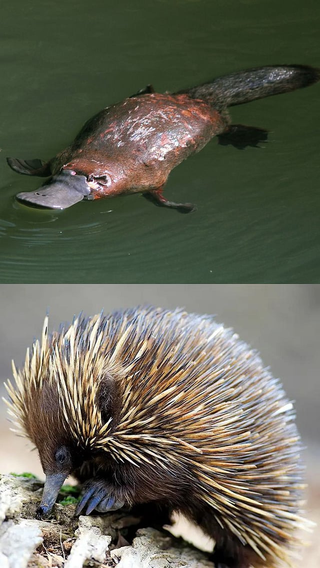 பிளாட்டிபஸ்(Platypus), மற்றும் எறும்புத்தின்னியான (Echidna) இரண்டுமே ஆஸ்திரேலியாவை சேர்ந்தவை. இவை முட்டையிட்டு குஞ்சுப் பொரித்து, அந்த குஞ்சுகளுக்குப் பாலையும் ஊட்டி வளர்க்கின்றன.