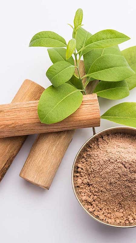 சந்தனம் உடல் சூட்டைத் தணிக்கும். கருத்த சருமத்தைப் பொலிவாக்கும். சருமத்திற்கு இறுக்கத்தைத் தரும்.