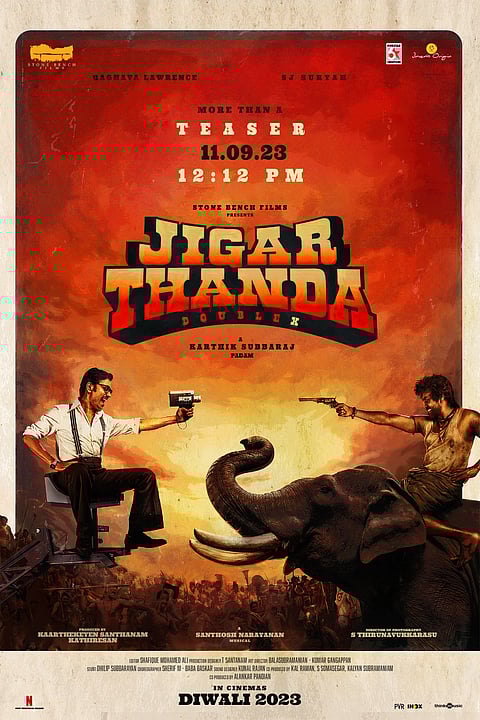 இந்த நிலையில், இப்படத்தின் புதிய அறிவிப்பை படக்குழு வெளியிட்டுள்ளது. அதன்படி, 'ஜிகர்தண்டா -2' திரைப்படத்தின் டீசருக்கும் மேலான ஒன்று வரும் 11ஆம் தேதி நண்பகல் 12.12 மணிக்கு வெளியாகும் என படக்குழு போஸ்டரை பகிர்ந்து அறிவித்துள்ளது. இந்த போஸ்டர் தற்போது இணையத்தை கலக்கி வருகிறது. என்னவாக இருக்கும் என ரசிகர்கள் கமெண்ட் செய்து வருகின்றனர்.