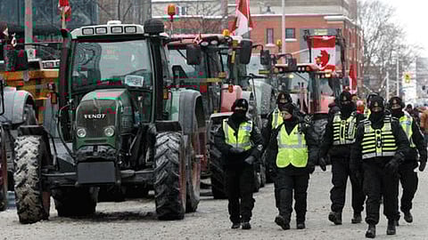 அந்த வகையில் கனடா அரசு, கொரோனா தடுப்பூசி செலுத்ததாத லாரி வகை டிரக் ஓட்டுனர்களுக்கு கட்டுப்பாடுகளை அறிவித்தது. பொதுவாகக் கனடா -அமெரிக்கா எல்லையில் போக்குவரத்து சகஜமாக இருக்கும். இரு நாடுகளுக்கு இடையே சரக்கு வாகன சேவை தொடர்ந்து நடைபெற்று வரும். இந்தச் சூழலில் தான் இரு நாட்டு எல்லைகளைக் கடக்க வேக்சின் கட்டாயம் உள்ளிட்ட கட்டுப்பாடுகளை அந்நாட்டின் பிரதமர் ஜஸ்டின் ட்ரூடோ அறிவித்தார். இது கனடா நாட்டின் டிரக் ஓட்டுநர்கள் மத்தியில் கடும் கொந்தளிப்பை ஏற்படுத்தியது.