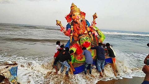 பெரிய அளவில் வண்ணத்தில் செய்யப்படுகின்ற பிள்ளையார் சிலைகளை நீர் நிலைகளில் கரைப்பதால் நீர் நிலைகள் வெகுவாகப் பாதிக்கப்படுகிறது. இந்த வகைப் பிள்ளையார்கள் ப்ளாஸ்டர் ஆஃப் பாரிஸில் செய்யப்பட்டு இராசயன வண்ணக் கலவை பூசப்படுகிறது. ப்ளாஸ்டர் ஆஃப் பாரிஸில் ஜிப்சம், சல்பர், பாஸ்பரஸ், மக்னீஷியம் உள்ளது. இவை தண்ணீரில் முழுவதுமாகக் கரைய பல மாதங்கள் ஆகும். இரசாயன வண்ணக் கலவையில் மெர்குரி, லீட், காட்மியம், கார்பன் போன்ற உலோகங்கள் உள்ளன. இவை நீரின் அமிலத் தன்மையை அதிகரிப்பதுடன், நீரில் உலோகங்களின் அளவையும் அதிகரிக்கிறது. இவற்றுடன் தெர்மோகோல், ப்ளாஸ்டிக் பூக்கள், பூஜைக்குப் பயன்படுத்தப்பட்ட ஊதுவத்தி, கற்பூரம் ஆகியவையும் சேர்ந்து நீரின் தன்மையை வெகுவாகப் பாதிக்கின்றன.