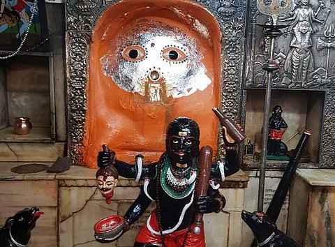 அவனும் அதற்கேற்ப அச்சிலைகளைத் தன் தோள் மீது சுமந்து வந்தான். நாட்டின் எல்லையை அடைந்தவுடன், சிரமப் பரிகாரம் செய்ய நினைத்து, நிபந்தனையை மறந்து ஒரு சிலையை அருகிலிருந்த கிணற்றின் மீதும், மற்றதை வேறொரு இடத்திலும் வைத்தான். பின்னர் எடுக்க முனையும்போது அவை அங்கேயே நிலை கொண்டுவிட்டதைக் கண்டுத் திகைத்து, உளமாற பைரவரை தொழுதான். அப்போது, “கவலைப்படாதே! நாங்கள் இங்கிருந்தவாறே உங்களைக் காத்தருளுவோம். தீய சக்திகளை அனைவரும் கேட்டு நடுங்கும் அமானுஷ்ய கூக்குரலிட்டு விரட்டுவோம். எல்லாம் மங்கலகரமாக நிறைவடையும்!” எனும் அசரீரி வாக்கு எழுந்தது. அவ்வாறே பாண்டவர்கள் அவ்விடத்திலேயே அவருக்குக் கோயில் எழுப்பி வழிபட்டு வெற்றிகரமாக ராஜதானியை நிர்மாணித்தனர்.