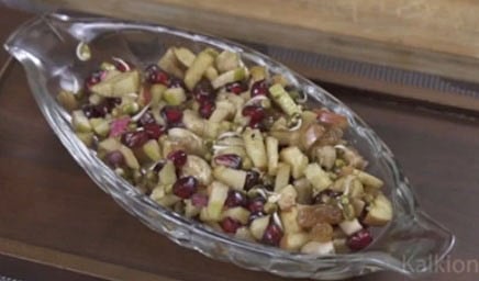தேவையான பொருட்கள் :முளைக்கட்டிய பாசிப்பயறு கொய்யாப்பழம் துண்டுகள், வாழைப்பழத் துண்டுகள்–தலா ஒரு கப்,மாதுளை முத்துக்கள் –சிறிதளவுஆப்பிள் – பொடியாக நறுக்கியது சிறிதளவு.