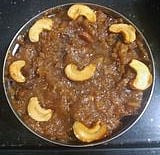 ஆப்பிளை துருவவும்.பிரெட் ஸ்லைஸை மிக்ஸியில் பொடிக்கவும். வெல்லம் மூழ்கும் அளவு தண்ணீர் விட்டு, சிறிது உப்பு, வெல்லம் போட்டு, கரைந்து கொதித்ததும் ஆறவிட்டு வடிகட்டிக் கொள்ளவும்.அடிகனமான பாத்திரத்தில் 2 ஸ்பூன் நெய்விட்டு உருகினதும், முந்திரி, திராட்சையை சிவக்க வறுத்து தட்டில் எடுத்துக் கொள்ளவும்.