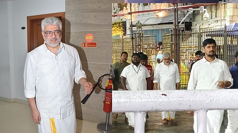 இந்த நிலையில், விடாமுயற்சி படத்தில் எஞ்சியுள்ள படப்பிடிப்பை நிறைவு செய்ய அஜித் வெளிநாடு செல்ல உள்ளார். விடாமுயற்சியின் 80 சதவீத படப்பிடிப்பு முடிவடைந்த நிலையில், 20 சதவீதம் படப்பிடிப்பு மட்டுமே மீதி உள்ளது. இதையடுத்து இந்த மாத இறுதியில் விடாமுயற்சி படக்குழு வெளிநாடு செல்ல உள்ளது. இந்நிலையில்தான் வெளிநாடு செல்லும் முன்பு திருப்பதி கோயிலுக்குச் சென்று நடிகர் அஜித்குமார் சாமி தரிசனம் செய்துள்ளார். பட்டு வேஷ்டி சட்டையுடன் வந்த அஜித், சாமி தரிசனம் செய்துவிட்டு அங்கிருந்த ரசிகர்களுடன் புகைப்படம் எடுத்துக்கொண்டார். இந்தப் புகைப்படங்கள் தற்போது இணையத்தில் வைரலாகி வருகின்றன.