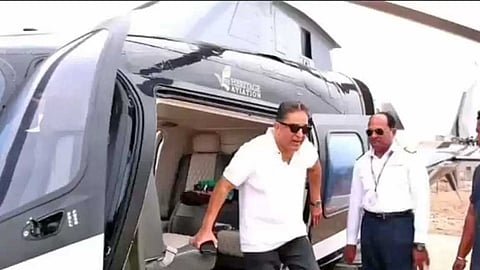 ‘இந்தியன் 2’ படத்தின் படப்பிடிப்பிற்காக நடிகர் கமலஹாசன் ஹெலிகாப்டரில் வந்திறங்கிய வீடியோ வெளியாகியுள்ளது.