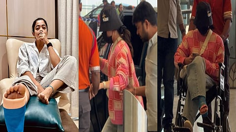 நடிகை ராஷ்மிகா மந்தனா தனது வேலையை எப்பொழும் அர்ப்பணிப்புடன் செய்வதால் தான் நம்பர் 1 நடிகையாக ரசிகர்களால் கொண்டாடப்படுகிறார். இந்நிலையில் சாவா படத்தின் ட்ரெய்லர் வெளியீட்டு விழாவிற்காக மும்பை செல்வதாக ஹைதராபாத் விமான நிலையத்தில் அவரை பார்த்த ரசிகர்கள் அதிர்ச்சி அடைந்தனர். ஏனெனில் ராஷ்மிகா காலில் கட்டுடன் இருந்தார். மேலும் அவர் காரில் இருந்து வெளியே வரும்போது நிற்கவும், நடக்கவும் மிகவும் சிரமப்பட்டார். பின்னர் அவர் தனது குழுவினரின் உதவுடன் நொண்டியபடி வந்து சக்கர நாற்காலியில் அமர்ந்துகொண்டார்.
