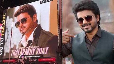 தளபதி விஜய்யின் பிறந்தநாளை ரசிகர்கள் வித்தியாசமாக கொண்டாட வேண்டும் என்று எண்ணியதையடுத்து, முதல்முறையாக நியூயார்க் நகரத்தின் டைம்ஸ் ஸ்கொயர் பில்போர்டில் தோன்றிய முதல் தமிழ் நடிகராக விஜய் மாறியுள்ளார்.