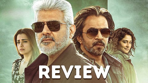 தனது இமேஜுக்கு சற்றும் முக்கியத்துவம் கொடுக்காமல் பார்ப்பவர்களிடமெல்லாம் அடி வாங்குகிறார். அவரைப் பூமர் என்று அழைக்கிறார்கள். வம்பு இழுப்பவர்களிடம் மன்னிப்பு கேட்கிறார். தனது மனைவி திரிஷா இன்னொரு ஆணுடன் திருமணம் தாண்டிய உறவில் இருப்பதை மௌனமாகக் கடந்து போகிறார். ஒரு மாஸ் ஹீரோ இதில் ஒன்றை கூட ஏற்றுக்கொள்ள மாட்டார். இது கதைக்குப் பலம் என்றாலும், ரசிகர்களுக்கும் படத்தின் ஓட்டத்திற்கும் பலவீனம். பெரிய ஹீரோ படங்களில் அவர்களுக்கு ஏற்ற சில மாஸ் காட்சிகளாவது வைப்பது வழக்கம். இதில் அப்படி ஓரேயொரு பலமான காட்சி கூட இல்லை. அதனாலேயே அஜீத் சாதாரணமாக அடித்தால் கூடக் கைதட்டி தங்கள் ஏமாற்றத்தை மறைத்துக் கொள்கின்றனர் ரசிகர்கள்.