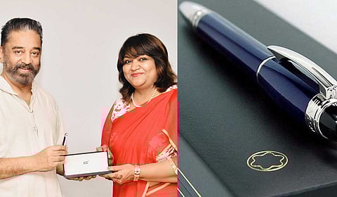 -இவ்வாறு அனுஷா ரவி தெரிவித்துள்ளார். கமலுக்குப் பரிசாகத் தரப்பட்ட இந்த நீல நிற மோண்ட் பிளாங்க் பேனாவின் மதிப்பு சுமார் ரூ.35,000 எனத் தெரிவிக்கப்படுகிறது. உலகெங்கும் மோண்ட் பிளாங்க் பேனா பெருமையின் சின்னமாகப் பார்க்கப் படுகிறது என்பது குறிப்பிடத்தக்கது.