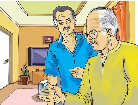 "அப்பா! இந்த வயசுல உங்களுக்கு இவ்வளவு பிடிவாதம் ஆகாதுப்பா! கிளிப்பிள்ளை மாதிரி சொன்னதையே திரும்பத் திரும்ப சொல்லிக்கிட்டு இருக்கேள். இதனால ஒங்களுக்கு மட்டும் கஷ்டமில்லப்பா! உங்க ஒருத்தரால, வீட்டுல இருக்கிற எல்லாரும் அவதிப்படணுமா? இதையெல்லாம் நீங்க புரிஞ்சுக்கவே மாட்டேளா?" கேசவனின் கேள்விக்கணைகள் அப்பா நாராயணனை கிஞ்சித்தும் அசைக்கவில்லை .