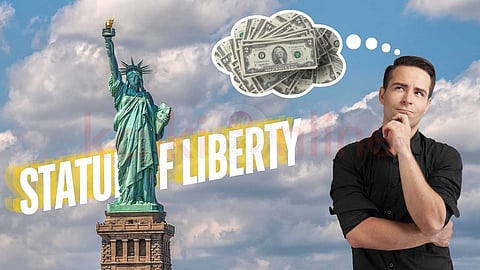 பிரமாண்டமாய் உயர்ந்து, வியப்புடன் அண்ணாந்து பார்க்க வைக்கிறது சுதந்திர தேவி சிலை!