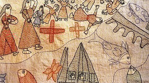 அதேபோல் இரண்டாவதாக இந்த எம்பிராய்டரியை 18ம் நூற்றாண்டு காலத்தின்போது குழந்தையைப் பெற்ற அம்மாக்கள் தங்கள் குழந்தைக்கு ஒரு அழகான எம்பிராய்டரி துணியில் படுக்க வைக்க வேண்டும் என்றுதான் உருவாக்கப்பட்டதாம். படுக்க வைப்பதற்கு மட்டுமல்ல அந்தத் துணியில் தங்கள் குழந்தையைப் பற்றி நினைத்து வைத்த அனைத்து கனவுகளையும் பழைய வேட்டி, சேலை துணிகளில் எம்பிராய்டரி செய்து நியாபக அர்த்தங்களாக குழந்தைகளுக்குக் கொடுப்பார்களாம்.