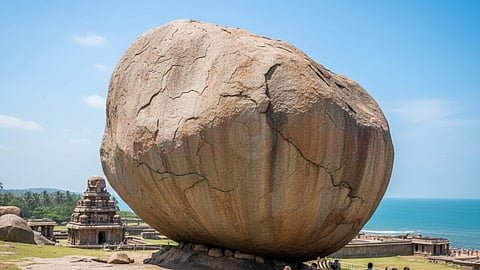 இயற்கை மற்றும் அறிவியலின் அற்புதம்: பல்லவ மன்னன் நரசிம்மவர்மன் இந்த பாறையை நகர்த்துவதற்கான முயற்சியை மேற்கொண்டார். ஆனால், அது தோல்வியில்தான் முடிந்தது.