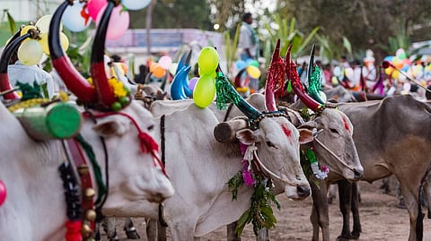 மாட்டுப் பொங்கல் நாளில், கிராமப்புறங்களில் மக்கள் தங்கள் பசுக்களையும், காளைகளையும் நன்றாக கழுவி அலங்கரிப்பர். அவற்றின் கொம்புகள் வர்ணம் பூசப்பட்டு, பளபளக்கும் உலோகத் தொப்பிகளால் அலங்கரிக்கப்படுகிறது. பல வண்ண மணிகள், சோளக்கட்டுகள் மற்றும் மலர் மாலைகள் காளைகளின் கழுத்தில் கட்டப்பட்டு, மஞ்சள், குங்குமம் ஆகியவை கால்நடைகளின் நெற்றியில் பக்தியுடன் இடப்படும். பின்னர் கால்நடைகளை கோவிலுக்கு அழைத்துச்சென்று பொங்கல் வைத்து, பூஜை செய்து, வழிபடுகிறார்கள். அடுத்து பசுக்களுக்கும், காளைகளுக்கும் பொங்கல், பழங்களை சாப்பிட கொடுத்து அவைகளுக்கு நன்றி செலுத்துகிறார்கள். விவசாயத்தில் விலங்குகளின் பங்களிப்புக்கு நன்றி தெரிவிக்க மக்கள் அவற்றை வணங்குகிறார்கள். உழவுக்கருவிகளை சுத்தம் செய்து சந்தனம், குங்குமம் வைப்பார்கள். விவசாயத்தில் பயன்படுத்தப்படும் அனைத்துக் கருவிகளையும் இதேபோல செய்வார்கள்.