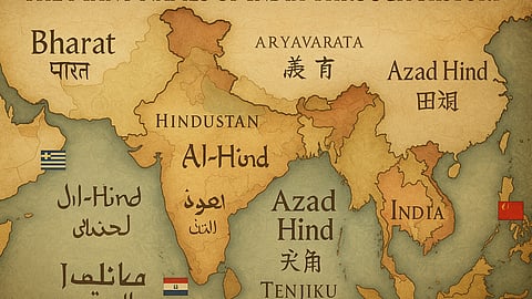 இந்தியாவிற்கு, ஜம்புதீபா என்ற பெயர் வேதங்களிலும் புராணங்களிலும் இருந்துள்ளது. கியாக்கர் , பக்யூல் என்ற பெயர்களில் திபெத்தியர்கள் நம் நாட்டை குறிப்பிட்டனர். சீனர்கள் தியான்சு என்றும், கொரியர்கள் சியான்சுக் என்றும், வியட்நாமியர்கள் தியான்ருக் என்றும் அழைத்துள்ளனர். ஹீப்ரு மொழியில் ஹோடு என்று இந்தியா குறிப்பிடப்பட்டது. ஜப்பானியர்கள் டென்ஜிகு (சொர்க்கத்தின் நிலம்) என்று பெருமையுடன் அழைத்தனர். தமிழ் இலக்கியங்களில் நாவலந்தீவு என்றும் நாவலந்தேயம் என்றும் அழைக்கப்பட்டிருந்தது. ஒவ்வொரு நாட்டு வரலாற்றிலும் பெருமையாக ஒரு நாடு குறிப்பிடப்பட்டு இருந்தால் , அது இந்தியாவாக மட்டும் தான் இருக்கும்.