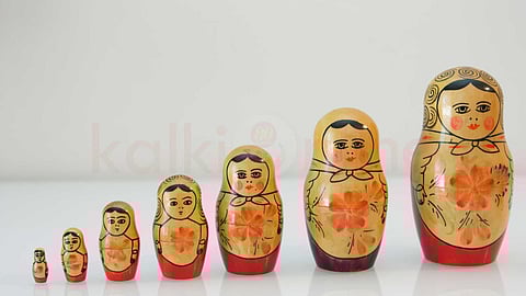 இந்தப் பொம்மை ஒன்றினுள் ஒன்று வைப்பது போன்று, சிறியது அதை விடச் சிறியது என்ற அளவோடு இருக்கும். ஒரு தொகுப்பு மத்ரியோஷ்கா பொம்மையைத் திறந்தால், இன்னொரு பொம்மை. அந்தப் பொம்மையைத் திறந்தால் இன்னொரு குட்டி பொம்மை என ஆறு பொம்மைகளைத் தன் வயிற்றுக்குள் வைத்திருக்கும் ஏழாவது பெரிய பொம்மையே மத்ரியோஷ்கா எனப்படுகிறது. மத்ரியோஷ்கா என்றால். அன்னை என்று பொருள் வரும் லத்தீன் சொல்லான மேட்ரனிலிருந்து திரிந்து இந்தப் பெயர் வந்துள்ளது.