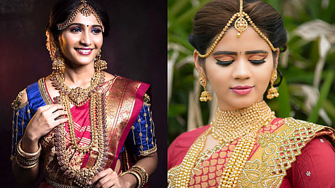 3.இதுவே, ஆடையில் வெள்ளி நிறத்தில் Base work அல்லது ஜரிகை இருந்தால், வெள்ளி, வைரம், முத்து போன்ற அணிகலன்களை அணியலாம்.