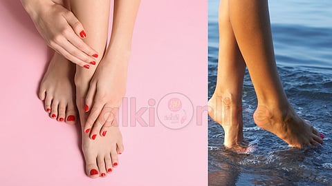 பெண்கள், புல்தரைகளில் தினமும் கொஞ்ச நேரம் செருப்பு அணியாமல் நடக்கவேண்டும். செருப்பு அணியாமல் புல் தரையில் நடந்தால் பாதங்கள் அழகாக இருக்கும். மேலும் வீட்டை விட்டு வெளியில் போகும்போது தங்கள் பாதங்களில் சிறிது பவுடர் போட்டு கொள்ள வேண்டும். இப்படி செய்தால் எவ்வளவு தூரம் நடந்தாலும் பாதங்கள் வலிக்காமலும், வறண்டு போகாமலும் இருக்கும்.
