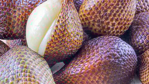 1. Salak: இந்தோனேசியாவில் கிடைக்கும் இந்தப் பழத்தின் தோல் பார்ப்பதற்கு பாம்பின் தோல் போலவேயிருப்பதால், இதற்கு Snake fruit என்று இன்னொரு பெயரும் உண்டு. இதனுடைய சுவை அன்னாசிப்பழமும், பலாப்பழமும் சேர்ந்தது போல புளிப்பாக இருக்குமாம். இந்தப் பழங்கள் பனை மர வகையைச் சேர்ந்ததாகும். Salak பழத்தில் மொத்தம் 15 வகைகள் உள்ளன. இந்தப் பழத்தை சாப்பிடுவதால் செரிமானப் பிரச்னையை சரிசெய்தல், கண் பார்வை குறைபாட்டை போக்குதல், உடல் எடைக்குறைப்பு, இரத்தத்தில் சர்க்கரையை கட்டுப்படுத்துதல் ஆகிய பிரச்னைகளைத் தீர்க்கலாம் எனச் சொல்லப்படுகிறது.