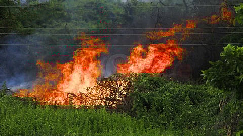 அதிக வெப்பம் காரணமாக காய்ந்த இலைகள் தீப்பிடிக்கும் சூழலுக்கு ஏற்றதாக உள்ளன. காய்ந்த மரங்களின் உரசல்களில் தீ ஏற்படுகின்றன. சில நேரங்களில் மின்னல்கள் மரங்களை தீ பிடித்து எரியவைக்கிறது. எளிதில் தீப்பற்றக்கூடிய சருகுகள் சிலநேரம் சூரியனின் வெப்பத்திலேயே நெருப்பு பற்றி எரிய தொடங்குகின்றன.