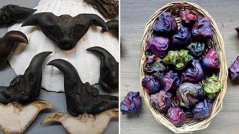 'சிங்காரா' என்பதற்கு 'எருமையின் தலை' அல்லது 'பறக்கும் வௌவால்' என்று அர்த்தமாம். எருமையின் தலை அல்லது பறக்கும் வௌவால் போன்ற உருவில் காணப்படுவதால், இப்பழத்திற்கு சிங்காரா பழம் என்ற பெயர் பெற்றதாகவும் சொல்லப்படுகிறது. இது நீர் கஷ்கொட்டை, பானிபால், வாட்டர் செஸ்நட் (Water chestnut), வாட்டர் கால்ட்ராப் (Water Caltrop), டெவில் பாட் (Devil Pot) , வௌவால் கொட்டை (bat nut) மற்றும் எருமை கொட்டை (buffalo nut) என்று பல பேர்களில் அழைக்கப்படுகிறது. 'Nut' என்று அழைக்கப்பட்டாலும், இது ஒரு நட் கிடையாது. இது ஒரு நீர்வாழ் கிழங்கு வகையாகும்.