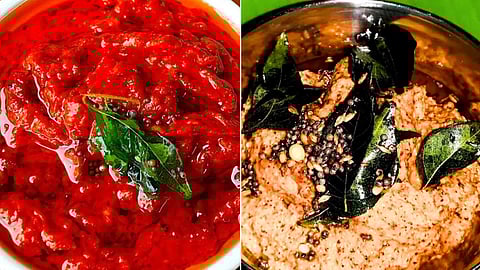 பிறகு 4 பூண்டு, கருவேப்பிலை சிறிதளவு, நறுக்கிய தக்காளி 2, உப்பு தேவையான அளவு சேர்த்து நன்றாக வதக்கிக் கொள்ளவும். கடைசியாக ஒரு கைப்பிடி தேங்காய் சேர்த்துவிட்டு தக்காளி நன்றாக குழையும் வரை வதக்கிவிட்டு இதை மிக்ஸியில் அரைத்துக் கொள்ளவும். இதை அப்படியே சாப்பிட்டாலும் சுவையாக தான் இருக்கும்.