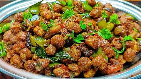 சின்ன வெங்காயத்தை தோலுரித்து நறுக்கிக்கொள்ளவும். கொத்தமல்லி தழையை மண் போக நீரில் அலசி விட்டு பொடியாக நறுக்கவும். ஒரு அகலமான பாத்திரத்தில் மூன்று டம்ளர் நீரூற்றி, தண்ணீர் சூடானவுடன், மீல் மேக்கர் உருண்டைகளை அதில் போட்டு கொதிக்க விட்டு எடுக்கவும். ஒரு கரண்டியால் மீல்மேக்கரை தனியாக எடுத்து ஒரு தட்டில் வைத்து ஆறவிடவும். பின் அவற்றை தண்ணீர் போகப் பிழிந்து விட்டு மிக்ஸியில் அரைத்துக் கொள்ளவும். அரைத்த கலவையை ஒரு பாத்திரத்தில் போட்டு அதனுடன் ராகி மாவு, இஞ்சி பூண்டு பேஸ்ட், மிளகாய் மற்றும் கரம் மசாலாத்தூள், வெங்காயம், மல்லித்தழை, உப்பு போட்டு தேவையான அளவு தண்ணீர் ஊற்றி சற்றே கெட்டியாக பிசைந்து கொள்ளவும். வாணலியில் எண்ணெய் ஊற்றி காய்ந்ததும் சிறிதளவு மாவு எடுத்து உள்ளங்கையில் வைத்து சிறு கோலிக்குண்டு அளவு உருட்டி எண்ணெயில் போட்டு பொரித்தெடுக்கவும்.