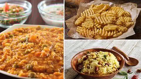 கலந்த சாதனங்களில் நிலக்கடலை, மு பருப்பு சேர்த்து கலந்து விட்டு பரிமாறும் முன் காராபூந்தி தூவி பரிமாற சுவை அதிகரிக்கும்.