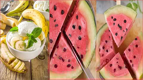 குழந்தைகளுக்கு கடைகளில் ஐஸ்கிரீம் வாங்கி கொடுக்காமல் வீட்டிலேயே ஆரோக்கியமான முறையில் பழங்களை வைத்து ஐஸ்கிரீம் செய்து கொடுக்கலாம். அந்தவகையில் இந்த கோடை வெயிலுக்கு தர்பூசணி, வாழைப்பழம் வைத்து இரண்டு சூப்பரான ஐஸ்கிரீம் செய்வது எப்படி என்று பார்க்கலாம்.