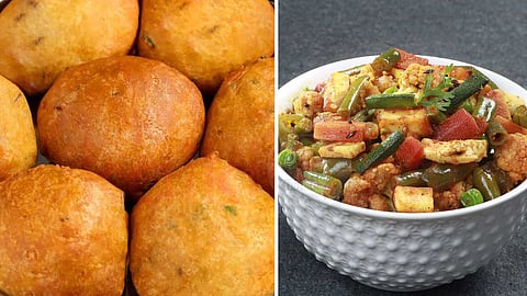 காய்கறிகளை குக்கரில் உப்பு, சிறிது மஞ்சளுடன் நன்றாக வேகவைக்கலாம். ஒரு வாணலியில் எண்ணெய் சூடாக்கவும். அதில் கடுகு, கறிவேப்பிலை, வெங்காயம் சேர்த்து வதக்கவும். பிறகு பூண்டு, இஞ்சி சேர்த்து நன்றாக வதக்கவும். தக்காளியை சேர்த்து பச்சை வாசனை போகும்வரை வதக்கவும்.