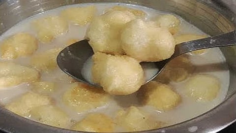 இப்போது அடுப்பில் எண்ணெய்யை நன்றாக காயவிட்டு அரைத்து வைத்திருக்கும் மாவை சிறு சிறு உருண்டை களாக போட்டு எடுக்கவும். இதை ரொம்ப வேகவிடாமல், பாதி வெந்தும் வேகாமலும் எடுத்தால் தேங்காய் பாலில் நன்றாக ஊறும். இப்போது செய்து வைத்திருக்கும் துணுக்கை தேங்காய் பாலில் போட்டு ஊறவைத்து சாப்பிட்டால் சூப்பர் டேஸ்டாக இருக்கும். நீங்களும் வீட்டில் ஒருமுறை முயற்சித்து பாருங்கள்.
