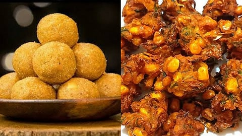 இன்றைக்கு சுவையான மாலைநேர ஸ்நாக்ஸ்களான உளுந்து லட்டு மற்றும் கார்ன் பகோடாவை வீட்டிலேயே சுலபமாக எப்படி செய்வது என்று பார்ப்போம்.