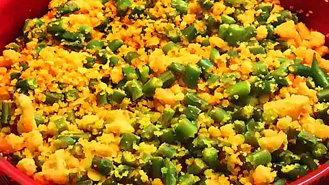 பீன்ஸ், கோஸ், கேரட், பச்சை பட் டாணி, அவரை பொடியாக நறுக்கி – 2 கப், வெந்தயக்கீரை - 2 கட்டு, துவரம் பருப்பு - 100 கிராம், கடலைப் பருப்பு - 50 கிராம், பயற்றம் பருப்பு - 50 கிராம், மிளகாய் வற்றல் -10, தேவையான அளவு உப்பு, தேவையான எண்ணெய். ராகி, கம்பு மாவு – ½ கப், பெரிய வெங்காயம் - 2, பச்சை மிளகாய் - 4, கறிவேப்பிலை, கொத்துமல்லி, தேவையான உப்புத் தூள், மிளகாய்த் தூள்.
