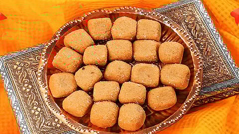 தேவையானவை: கோதுமை மாவு - ஒரு கப், பொடித்த சர்க்கரை – அரை கப், பாம்பே ரவை – 1 டேபிள்ஸ்பூன், முந்திரி, பாதாம் - தலா10 (மிக்ஸியில் ஒன்றிரண்டாக பொடித்துக் கொள்ளவும்), ஏலக்காய்த்தூள் - ¼ டீஸ்பூன், நெய் – 4 டேபிள்ஸ்பூன்.