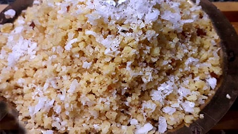 பின்னர் வெளியே எடுத்து துணியைத் திறக்கையில் மணம் கமகமக்கும். சிறிது தேங்காய்ப் பூவை லேசாகத் தூவி... நெய்யுடன் சாப்பிட, சுவையாக இருக்கும். சத்தானது.