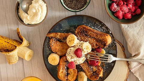 வாழைப்பழத்தை நன்கு மசித்து காய்ச்சிய கெட்டிப்பால் , வெண்ணிலா எசன்ஸ் சேர்த்து கலக்கி ஐந்து நிமிடம் ஊறவிடவும். இந்த கலவையில் பிரட்டை இருபுறமும் நனைத்து தவாவில் டோஸ்ட் செய்யவும். தேவைப்பட்டால் சிறிது நெய் சேர்த்து டோஸ்ட் செய்யலாம். பரிமாறமும் பொடித்த வால்நட் அல்லது பாதாம் மற்றும் தேங்காய் துருவலைத் தூவித் தரலாம்.உடன் ஜாம் வைத்துத் தந்தால் குழந்தைகள் குதூகலமாக சாப்பிடுவார்கள்.