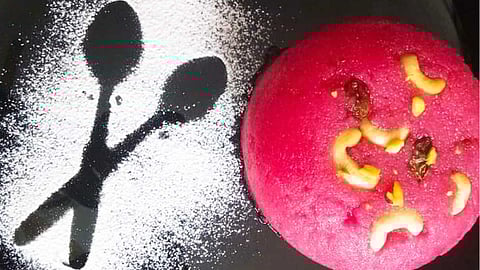 7.நெய்யில் வறுத்த முந்திரி,உலர்திராட்சை சேர்த்து பரிமாறவும்.