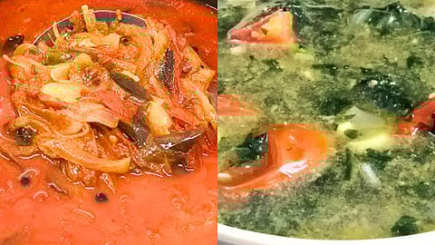 செய்முறை: வாணலியில் சிறிது எண்ணெய்விட்டு வெங்காயத்தை போட்டு நன்றாக வதங்கியதும், தக்காளி, பச்சை மிளகாய், இஞ்சி போட்டு வதக்கி கொஞ்சம் தண்ணீர் ஊற்றி மஞ்சள் பொடி, உப்பு சேர்த்து நன்கு கிளறிவிட்டு அடுப்பை மிதமான தீயில் வைத்து மூடி வைக்கவும். 5 நிமிடம் கழித்து அடுப்பை அணைத்து விடவும். ஆறியதும் தண்ணீரை வடித்து விட்டு மிக்ஸியில் போட்டு 2 திருகுதான் சுற்றி கொரகொரப் பாக எடுக்க வேண்டும். அரைத்த விழுதை வேறு ஒரு பாத்திரத்தில் மாற்றி அத்துடன் காய் வெந்த நீரை ஊற்றி கலந்து குழம்பு பதத்திற்கு ஆக்கவும்.