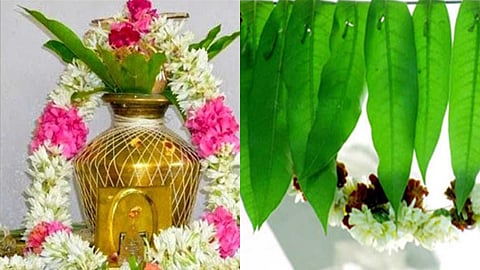1. ஓர் ‘பூர்ண கும்பத்தை’ முடிக்க, மங்கல சடங்குகள் மற்றும் பூஜையின்போது மாமரத்தின் இலைகள் பயன்படுத்தப்படுகின்றன. பூஜை அடிதளத்திற்காக ஒரு மண் பானை பராமரிக்கப்படுகிறது. இதில் பானை அன்னை பூமியையும், நீர் வாழ்வின் ஆதாரத்தையும்,, தேங்காய் தெய்வீக உணர்வையும், மா இலைகள் வாழ்க்கையையும் குறிக்கின்றன. ‘முழு பூர்ண கும்பம்’ மகாலட்சுமி மற்றும் செழிப்பைக் குறிக்கிறது.