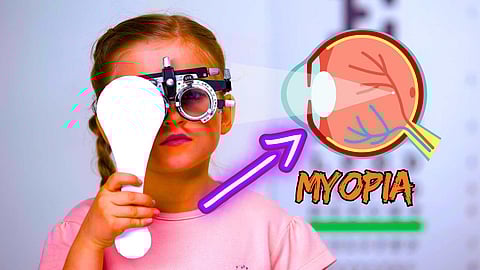மயோபியா என்பது ஒளிவிலகல் பிழையால் ஏற்படும் ஒரு கண் பிரச்சனை. இதில், குழந்தைகளால் தொலைதூரப் பொருளைத் தெளிவாகப் பார்க்க முடியாது. அருகில் உள்ள பொருளைத் தெளிவாகப் பார்க்க முடியும் என்பதால் இதனை கிட்டப்பார்வை என்று அழைக்கிறோம். இந்த நோயில், குழந்தைகள் சிறு வயதிலேயே கண்ணாடி அணிவார்கள். எனவே, ஆரம்பத்திலிருந்தே அவற்றை கவனித்துக்கொள்ள மருத்துவர்கள் அறிவுறுத்துகிறார்கள். கிட்டப்பார்வையால் பாதிக்கப்பட்ட குழந்தைகள், டி.வி., சாலையில் உள்ள சைன் போர்டு, பள்ளியில் உள்ள கரும் பலகைகளில் எழுத்துக்களை சரியாக பார்க்க முடியாமல் தவிக்கின்றனர்.