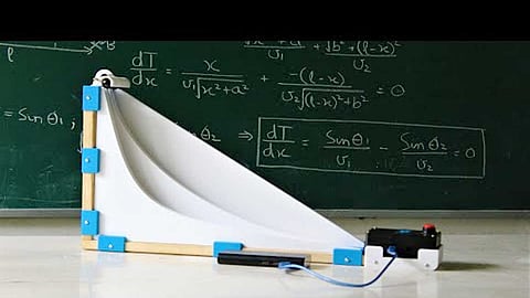 இதில் இரண்டு வளைவான பாதைகளும், ஒரு நேர் பாதையும் இருக்கும். அதிசயம் என்னவென்றால், வளைவான பாதைகள் வழியாக வரும் பந்துகளே முதலில் வந்து இலக்கை அடையும். இத்தனைக்கு அந்த பந்துகள் எவ்வளவு கனமாக இருந்தாலும் சரி ஈர்ப்பு விசையினை தாண்டி முதலில் வந்து இலக்கை அடையும் என்பது குறிப்பிடத்தக்கது.
