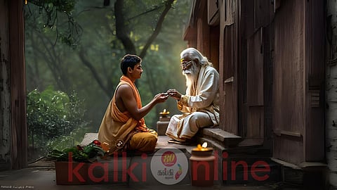 அப்போது சூரிய ஒளிபட்டு அவனது கையில் இருந்த மோதிரம் பிரகாசித்தது. உடனே ஞானி சொன்ன வாக்கு நினைவுக்கு வந்தது. அந்த மோதிரத்தைப் பிரித்தபோது அங்கு ஒரு சிறிய துணியில் பின்வரும் வாசகம் இருந்தது.