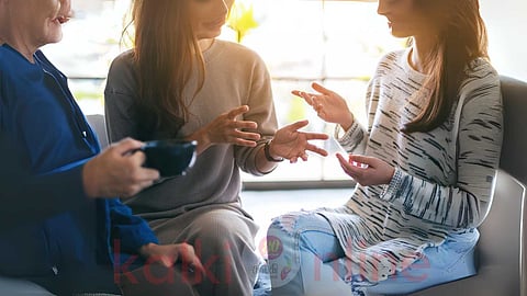 கைகளைக் கட்டிக்கொள்வது பாதுகாப்பின்மையாலும் பயத்தினாலும் ஏற்படுகிற ஒரு பிரதிபலிப்பு.