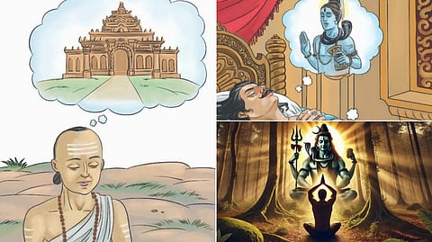 இவரிடம் பணம் இல்லாத காரணத்தால், மனதிலேயே சிவனுக்காக கோவில் கட்டத் தொடங்கினார். தினமும் மனம் முழுவதும் பக்தியோடு அடிக்கல் நாட்டி, சுவர் எழுப்பி சிறிது சிறிதாக கோவில் கட்டத் தொடங்கினார்.