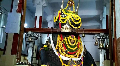 திராவிடக் கட்டடக்கலை பாணியில் கட்டப்பட்ட இந்த ஆலயத்தின் கருவறையில் பிரம்மாண்ட நந்தி சிலை உள்ளது. 4.5 மீட்டர் உயரமும் 6.5 மீட்டர் நீளமும் கொண்ட ஒரே கல்லில் இந்த சிலை காணப்படுகிறது. நந்தியின் பின்புறம் வாலின் அருகில் சிறிய அளவிலான கணபதியின் சிற்பம் இருக்கிறது. நந்தியின் பின்புறம் அமைக்கப்பட்ட சிறிய கருவறைக்குள் சிவபெருமான் லிங்க வடிவில் காட்சி அளிக்கிறார்.